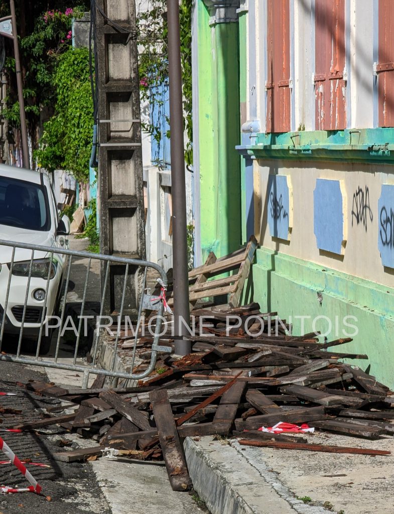 En octobre/novembre 2023, le plancher du balcon s’écroule et les services techniques de la ville récupèrent le bois pourri.