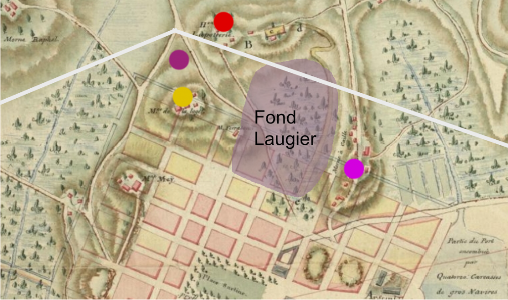 En rouge : habitation Lapotterie,